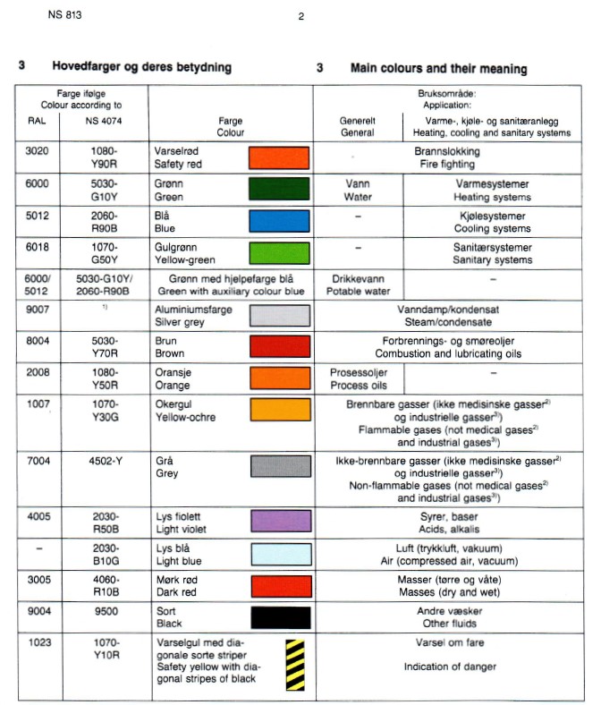 NS813 – Rørsystemer – Fargemerking for angivelse av innhold.